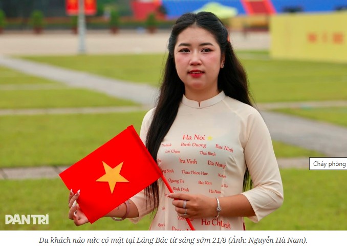 Từ sáng sớm 21/8, nhiều du khách đã có mặt tại Lăng Bác với mong muốn hòa mình vào bầu không khí lễ hội. Chị Minh Anh, một du khách 20 tuổi đến từ Bắc Ninh, cho biết cô đã cùng nhóm bạn có mặt tại đây từ sớm để chờ xem buổi tổng duyệt. Tuy nhiên, khi biết thông tin về việc cấm đường kéo dài đến 3h sáng hôm sau, nhóm bạn đã quyết định tìm kiếm nơi lưu trú gần Quảng trường Ba Đình.
